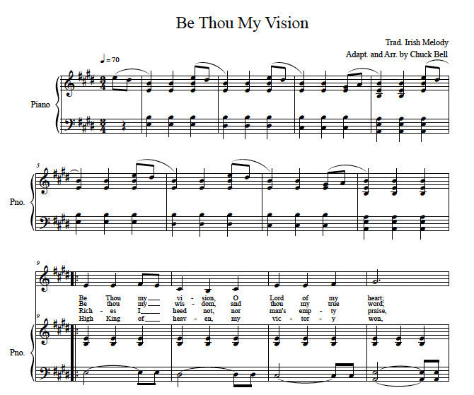 Scored for Piano and Lead Voice and includes a chord sheet. Key of E. To request a chord sheet in any additional key, free of charge after purchase, contact info@chuckbellmusic.com